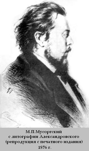 Никакой, даже самый искушенный, психиатр не может сказать, с какой рюмки начинается зависимость от психоактивного вещества, каким, несомненно, является алкоголь. Друзья Мусоргского относили это к 50-м, 60-м, 70-м годам — в зависимости от того, когда они знакомились с композитором. Кстати говоря, Стасов и многие другие, не писавшие о «питье» Мусоргского, относили эту трагедию не к болезни, а к безволию, распущенности, пороку… В середине 70-х тяга к алкоголю была уже так сильна, что Мусоргский употреблял его и ночью. Стасов был убежден, что истоки зла в праздности и «подлой пьющей компании» «Малого Ярославца» — любимого трактира Мусоргского, где он любил посидеть за коньяком с «отвратными пьяницами и мерзавцами грубого и последнего разбора», для которых «проконьячиться» было образом жизни…